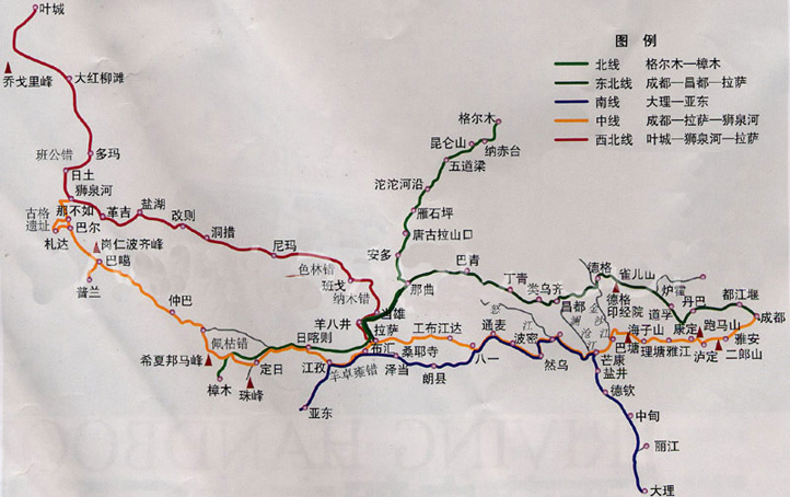 拉薩、布達(dá)拉宮、大昭寺、納木錯(cuò)、那根拉雪山、羊八井、巴拉雪山、羊卓雍湖、卡若拉冰川、江孜、日喀則、扎什倫布寺、定日、絨布寺、珠峰大本營(yíng)、薩嘎、仲巴、帕羊、神山崗仁波齊、扎達(dá)、古格、獅泉河、多瑪、紅柳灘、葉城、英吉沙、喀什、香妃墓、艾提尕爾清真寺、老城區(qū)、烏魯木齊。