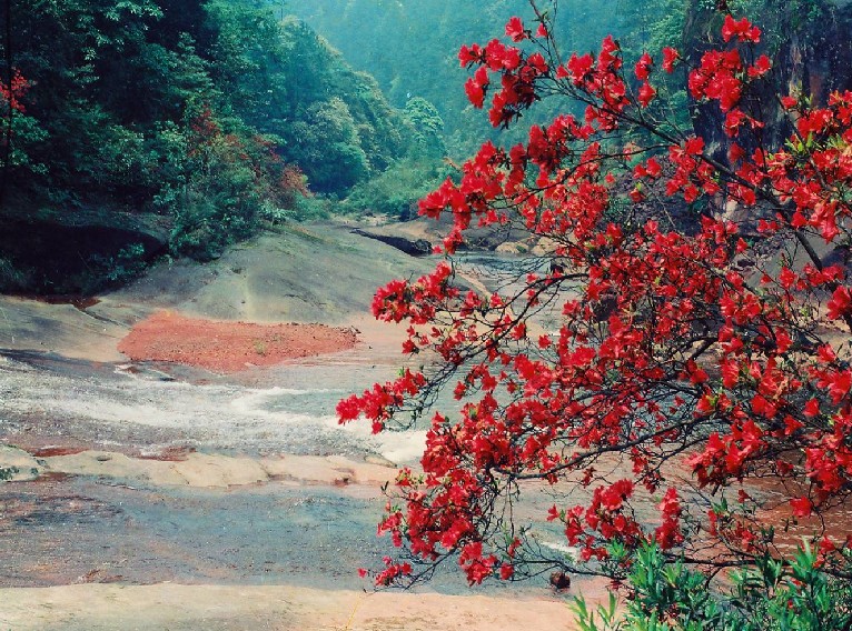 合江佛寶景區(qū)為省級(jí)風(fēng)景名勝區(qū),位于瀘州市東面合江縣境內(nèi),面積380平方公里。佛寶峰巒起伏,是樹(shù)種保存完整而豐富的常綠闊葉林帶,是四川的生物資源基因庫(kù)。景區(qū)內(nèi)有碧波浩瀚的竹海,有溪洞縱橫、飛瀑流泉的水景。丹霞地貌與綠色森林巧妙配合,形成了“紅石綠樹(shù)相映,風(fēng)光獨(dú)具一格”的景觀效果。 佛寶分為3個(gè)景區(qū):爛田壩景區(qū),距佛寶18公里,以竹海和林海景色為主,有“金竹嶺”、“三重天門”、“雙龍飛瀑”、“仙人踩橋”、“仙姑池”等18個(gè)景點(diǎn),郁郁蔥蔥,環(huán)境幽雅。 天堂壩景區(qū),位于佛寶景區(qū)中部,有“鹿鳴瀑布”、“天堂飛流”、“蓮花異石”、“平灘映月”等24個(gè)景點(diǎn)。景觀集中而多變。自懷景區(qū),位于佛寶風(fēng)景區(qū)東側(cè),以原始古樸的山林野趣取勝,有“虹橋清音”、“古堡余輝”、“劍門削壁”等12個(gè)景點(diǎn)。豐富多彩的巖石景觀在霧露常伴的原始森林中若隱若現(xiàn),顯得神奇而富有詩(shī)意。自懷古鎮(zhèn)民居建筑獨(dú)具特色,別有風(fēng)味。