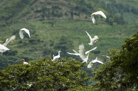 現(xiàn)在,鳥兒最多時,達到六千只以上。白鶴、灰鶴等季鳥每年十一月遷徙到南方過冬。來年的六月份又飛回來繁衍后代,其它的鳥類則定居下來。每當夏秋的早晚,鳥兒傾巢飛出,情景頗為壯觀,到處都是鳥聲,到處都是鳥影。白鶴早出晚歸,而灰鶴則早歸晚出,形成了一道獨特的風景線。當人們穿行于繁密的樹林中,鳥鳴聲不絕,聲聲悅耳。倘若你中午上山,定會看到群鳥在池中洗澡、游玩。還會看到各種小鳥跳躍于樹叢間,或高或低,或左或右,看清了這只,那只瞬間又躍過你的視線,落在另一根樹交叉,令你目不暇接,流連忘返。